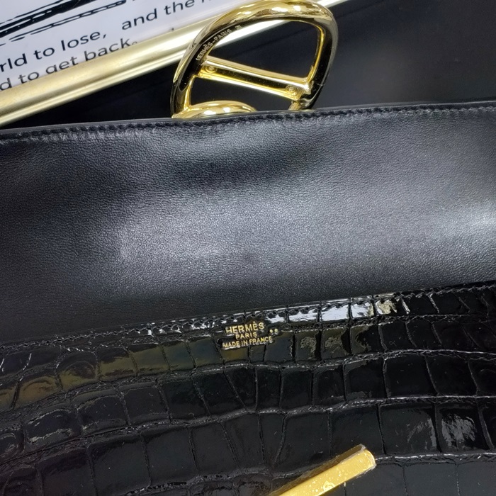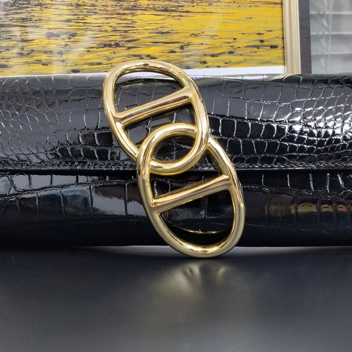 Egee Crocodile - エルメス イージー クロコダイルレザーレディース クラッチバッグ HERB0379,ブラック()