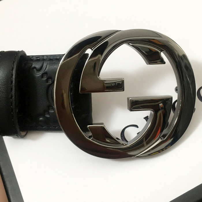 グッチ メンズ レザー コンスタンス ベルト (ブラック)