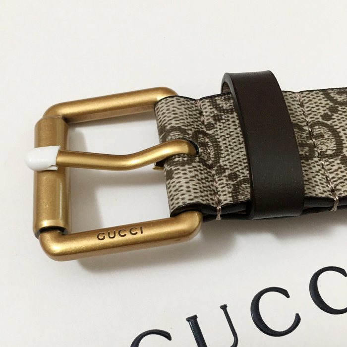 グッチ メンズ レザー コンスタンス ベルト (グレー)