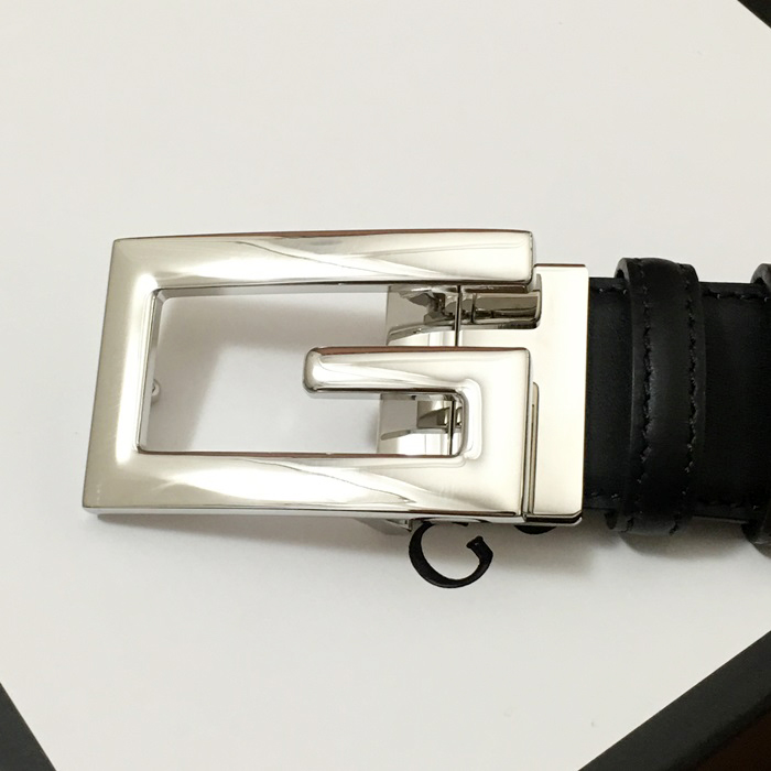 グッチ メンズ レザー コンスタンス ベルト (ブラック)