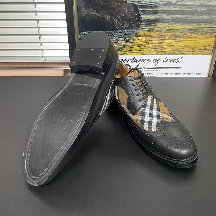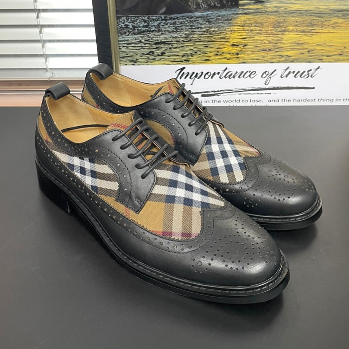 バーバリー メンズ ヴィンテージ チェック パネルレザーダービー ブラック シューズ - Oxford - bu301x