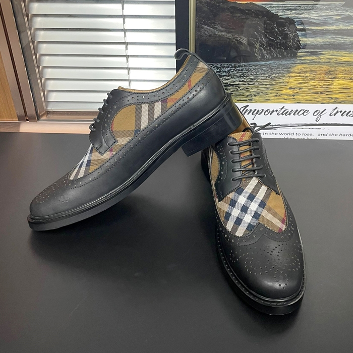 バーバリー メンズ ヴィンテージ チェック パネルレザーダービー ブラック シューズ  - Oxford - bu301x