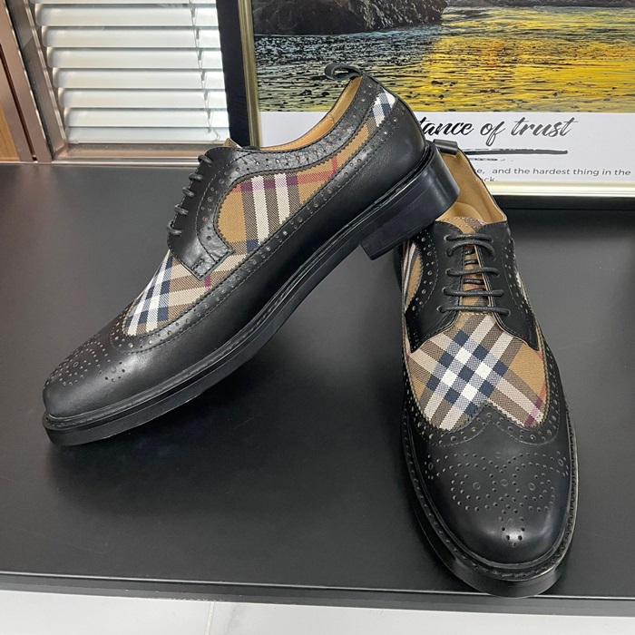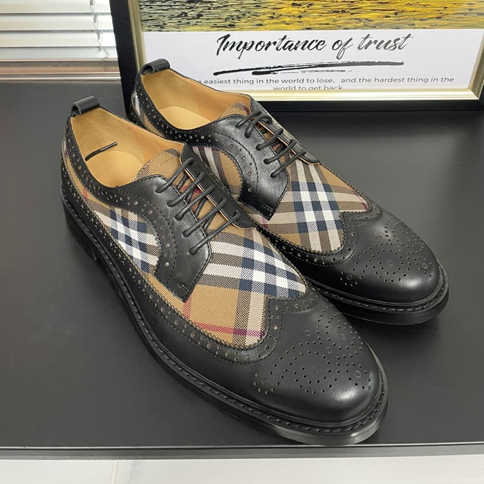 バーバリー メンズ ヴィンテージ チェック パネルレザーダービー ブラック シューズ - Oxford - bu301x