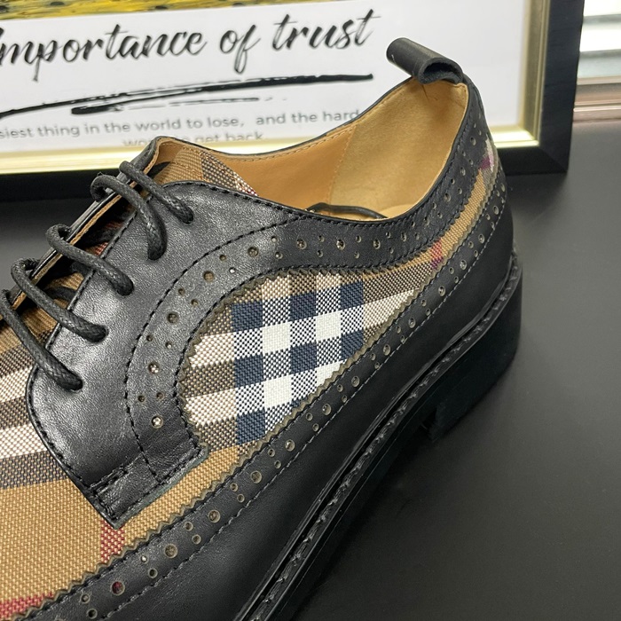 バーバリー メンズ ヴィンテージ チェック パネルレザーダービー ブラック シューズ  - Oxford - bu301x