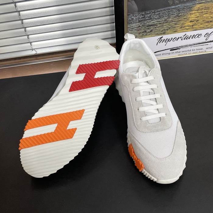 エルメス ユニセックス バウンシング メッシュ ホワイト/レッド/オレンジ スニーカー - White - he262x