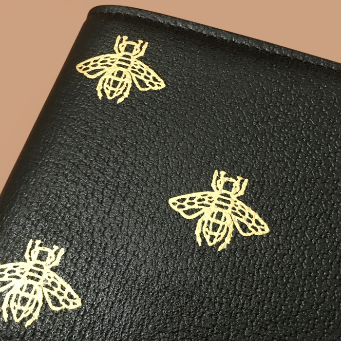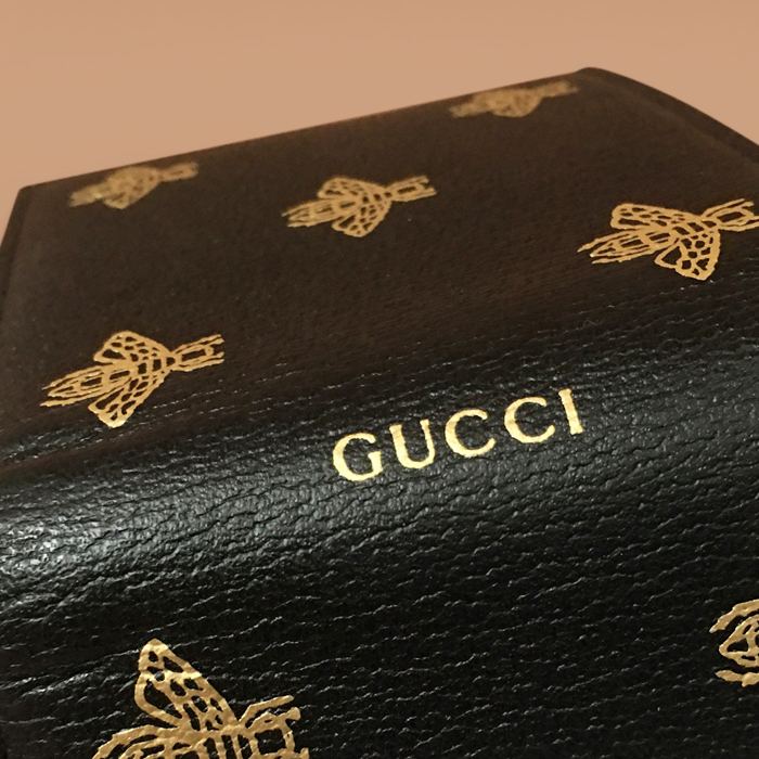 グッチメンズミツバチレザー二つ折り財布 ブラック