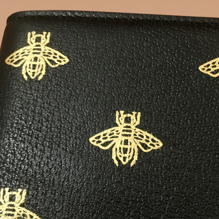 グッチメンズミツバチレザー二つ折り財布 ブラック