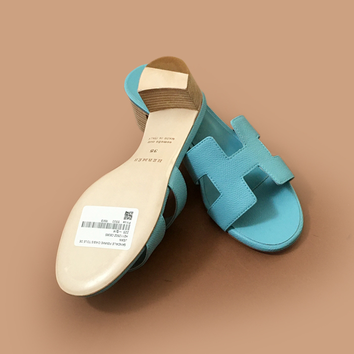 エルメスレディースレザースリッパブルー