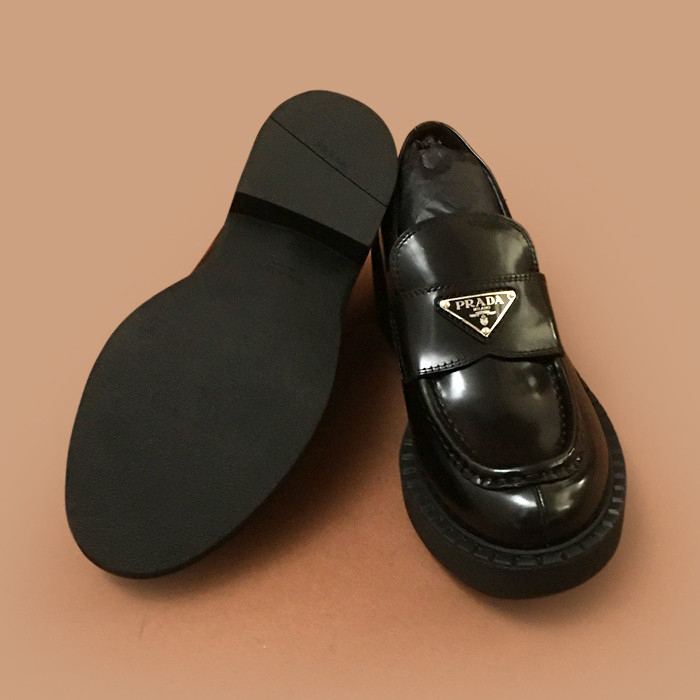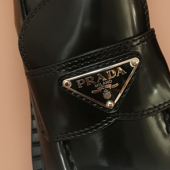 プラダレディース レザーローファーブラック