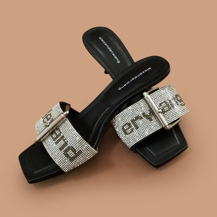 アレキサンダーマックイーンレディースレザーハイヒール スリッパALWS0042,ブラック