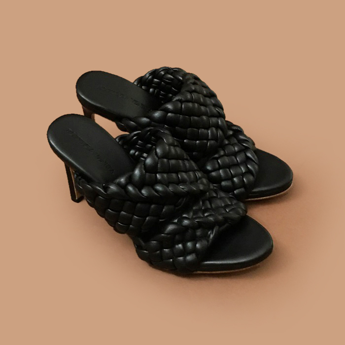 ボッテガヴェネタレディースレザーハイヒール スリッパBVS0322 ブラック