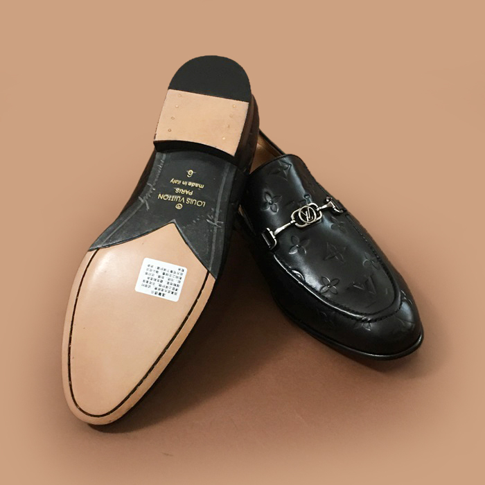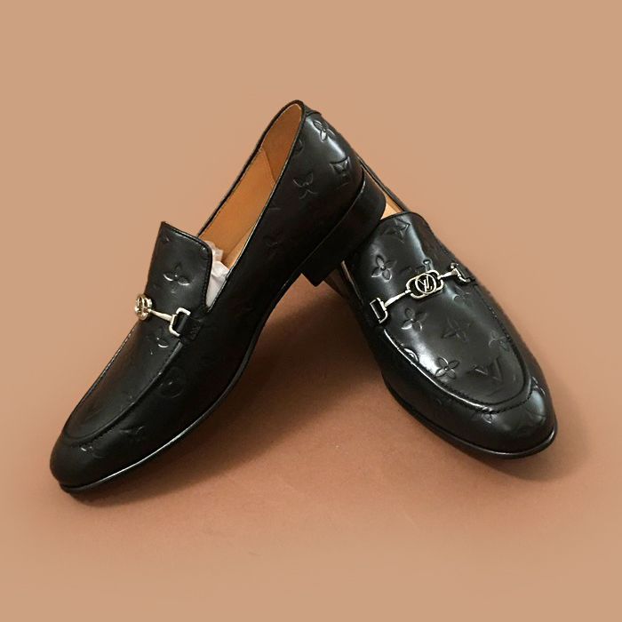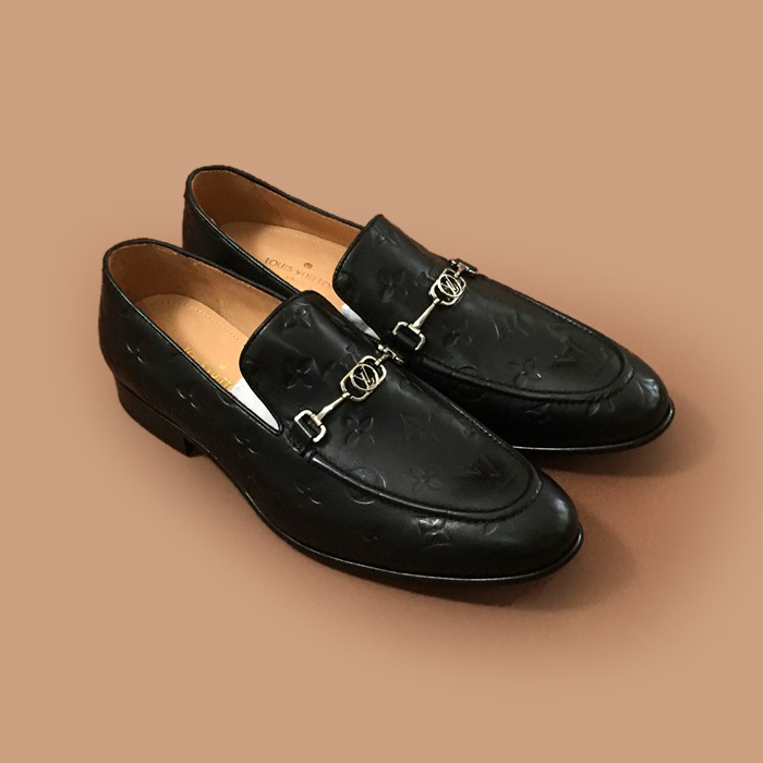 ルイヴィトンメンズ レザーローファーブラック