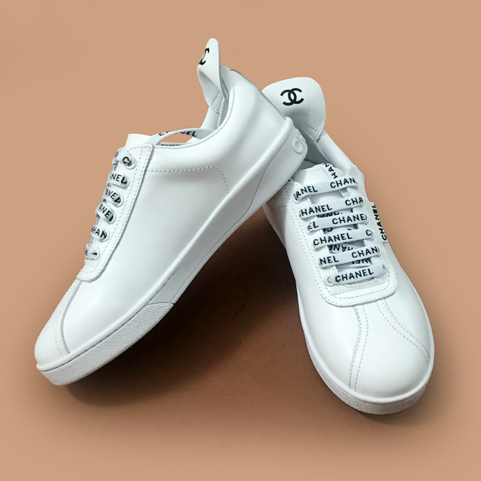 シャネル2021 ユニセックスレザースニーカー,Sizeホワイト