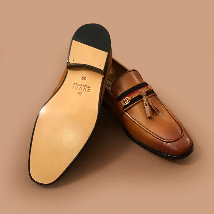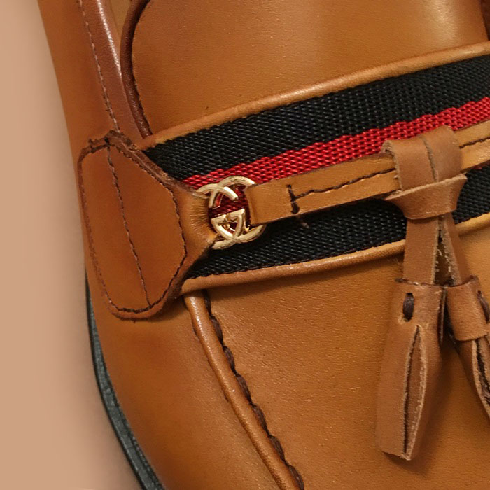 グッチメンズ レザーローファーブラウン