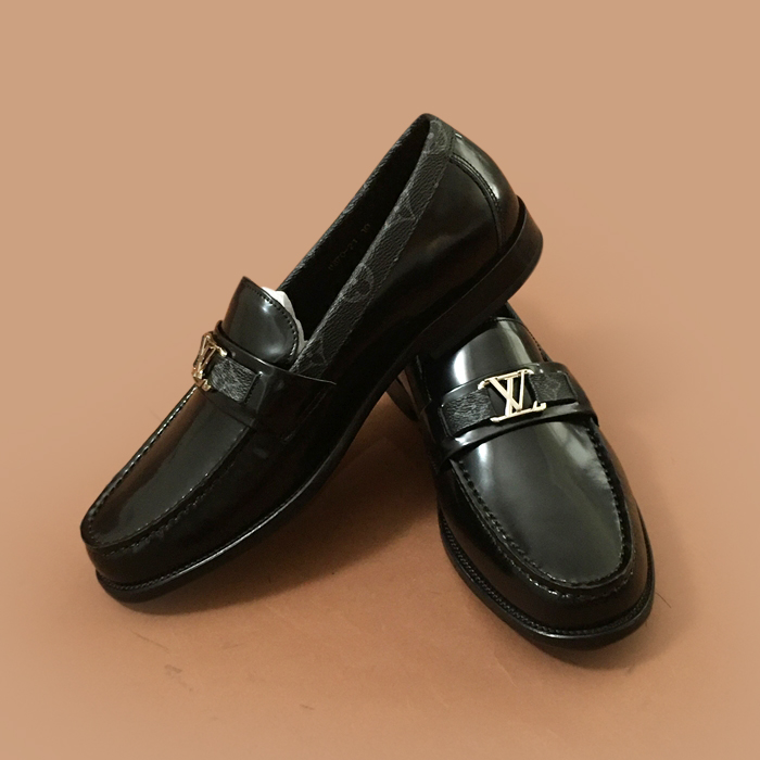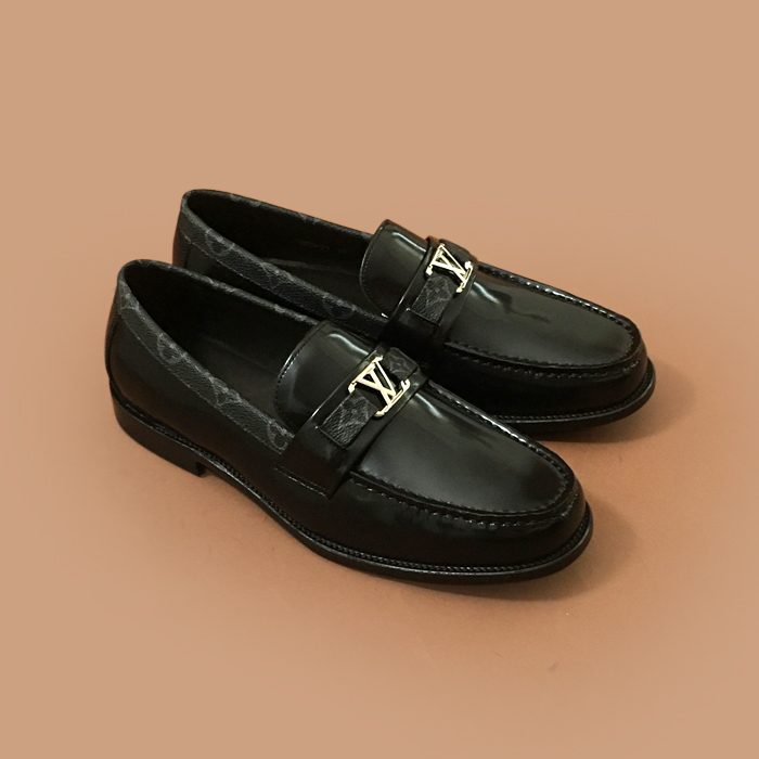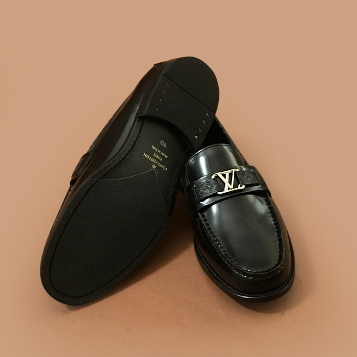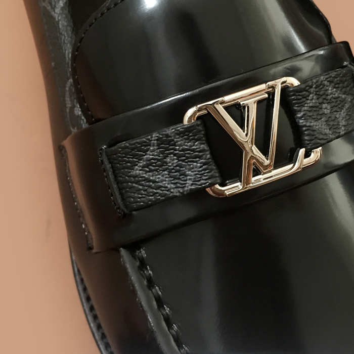 ルイヴィトンメンズ レザーローファーブラック
