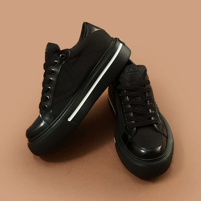 プラダ メンズ キャンバス スニーカーブラック