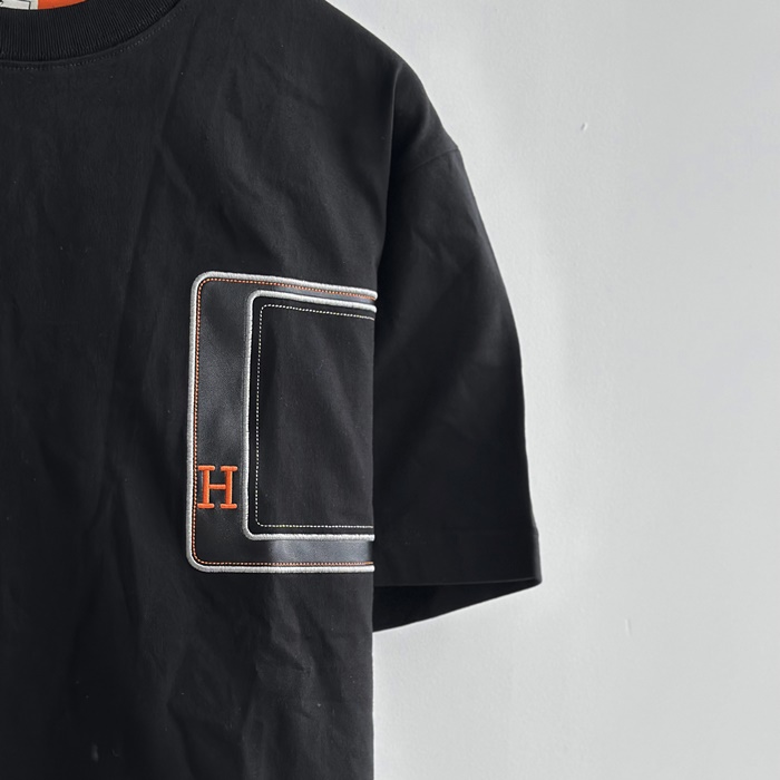 2023 エルメス メンズ ブラック クルーネック 半袖Tシャツ -  - her0742x