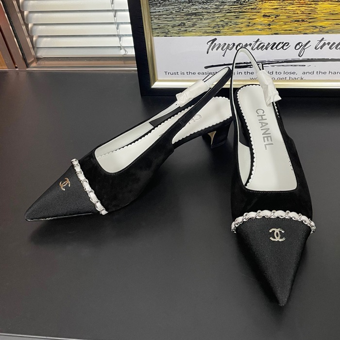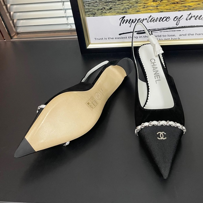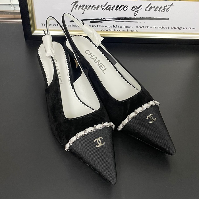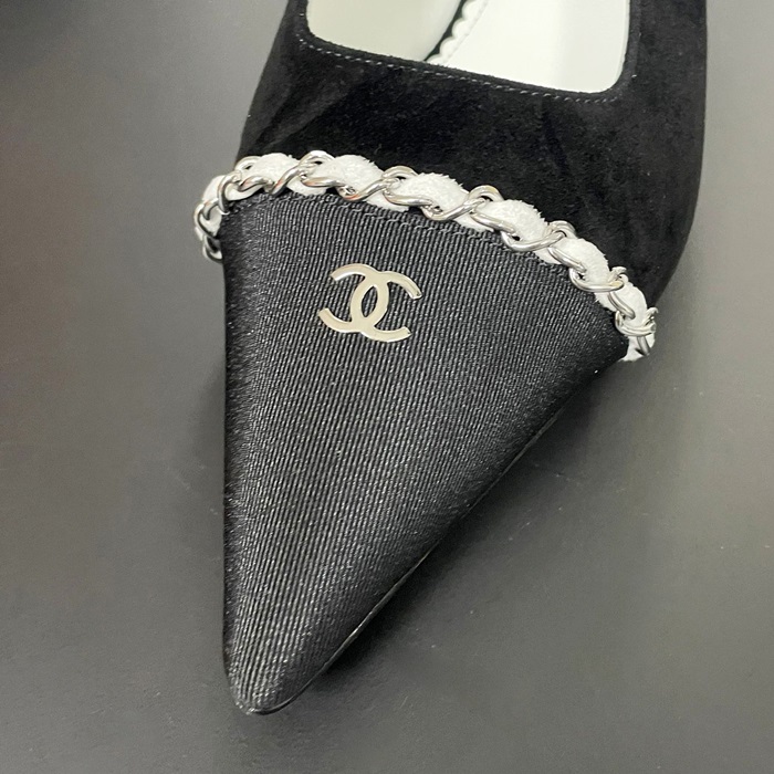 シャネルレディース スリングバック スエード カーフスキン  メタル & ブラック グレー  -  Sandals - ch549x