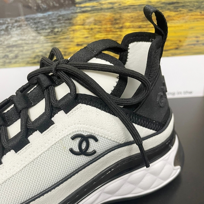 シャネルレディース ミクスドファイバー スニーカー ホワイト ブラック LOGO - White - ch566x