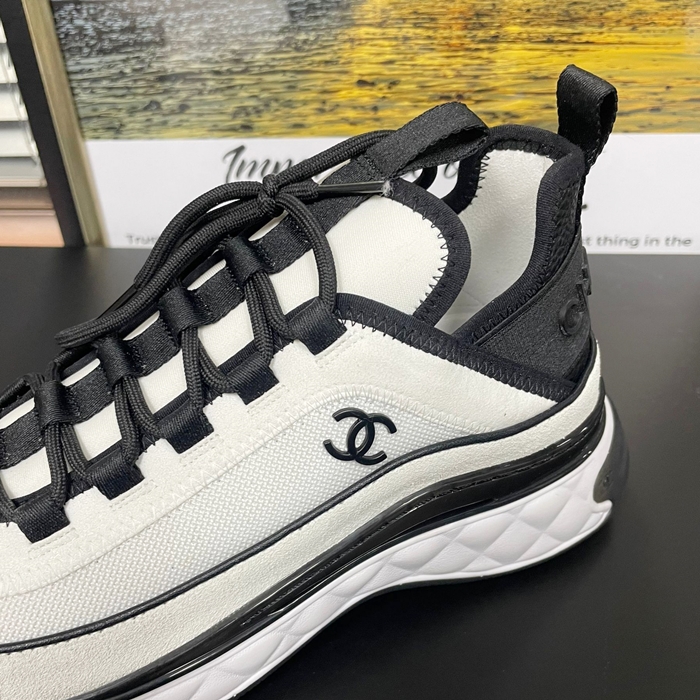 シャネルレディース ミクスドファイバー スニーカー ホワイト ブラック LOGO - White - ch566x