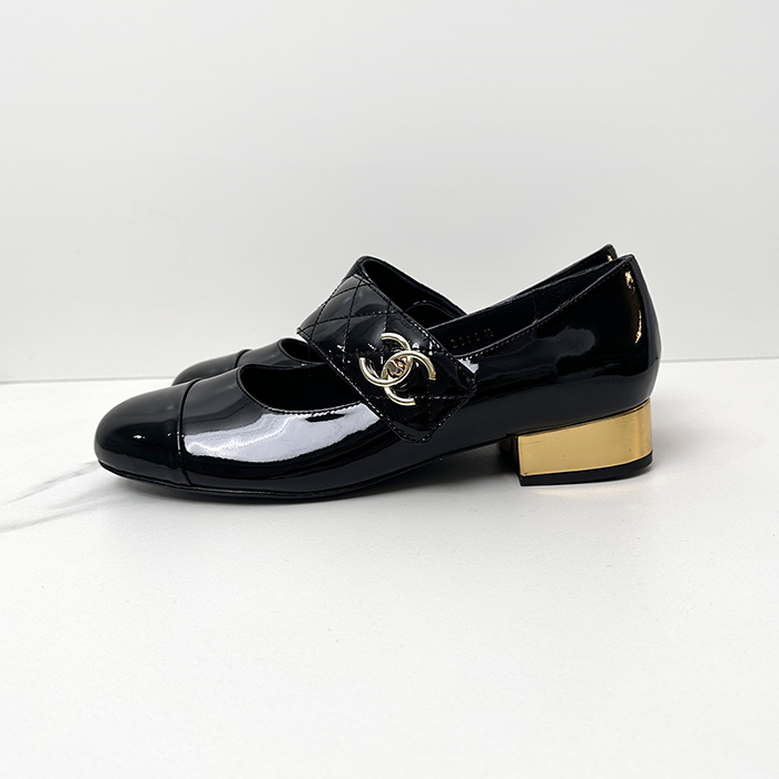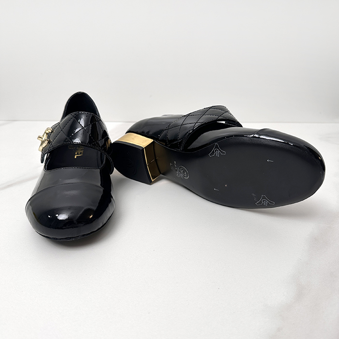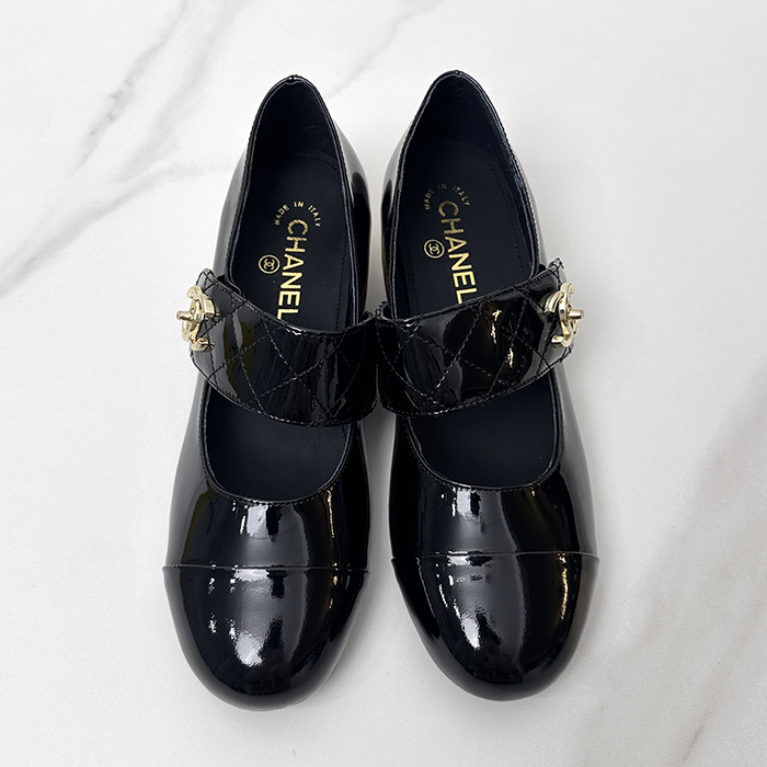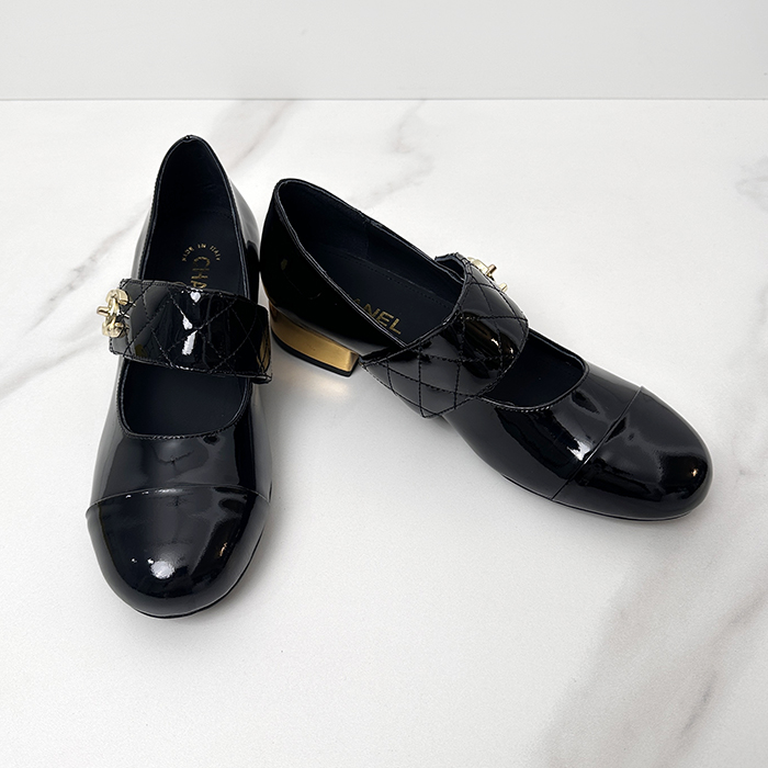 シャネルレディース メリージェーンパテント ゴートスキン & ブラック ch543x