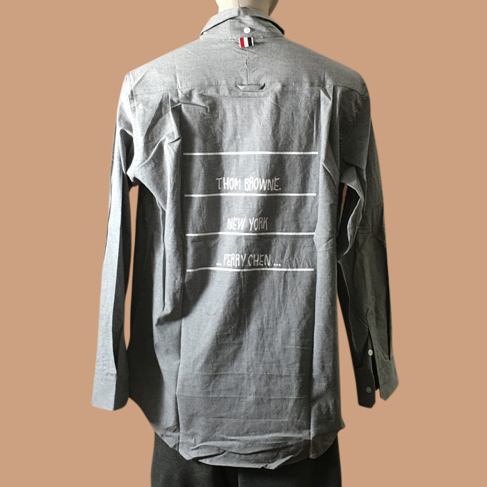トムブラウン メンズ LOGO グレー ロングスリーブシャツ