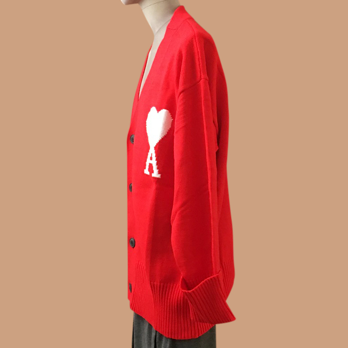 Ami LogoCardigen Red - アーミー2021 ユニセックス LOGO カジュアル カーディガン Ami0226x レッド