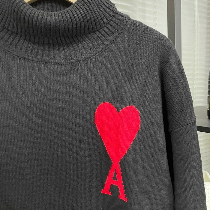 AmiLogoTurtle-neck  - アーミー2023 ユニセックス LOGO カジュアル タートルネック セーター Ami0255x Size(s - xl) ブラック
