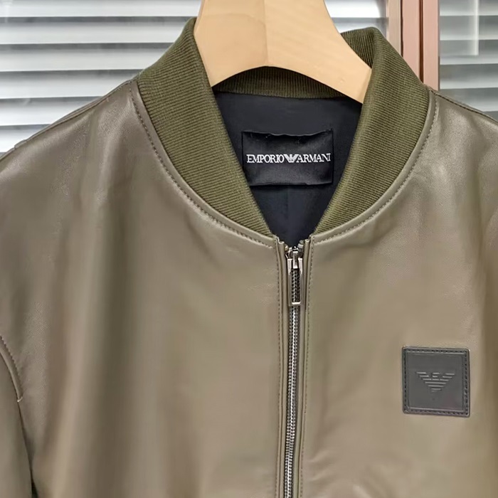 アルマーニ メンズ カーキ レザージャケット - Khaki - cl155x