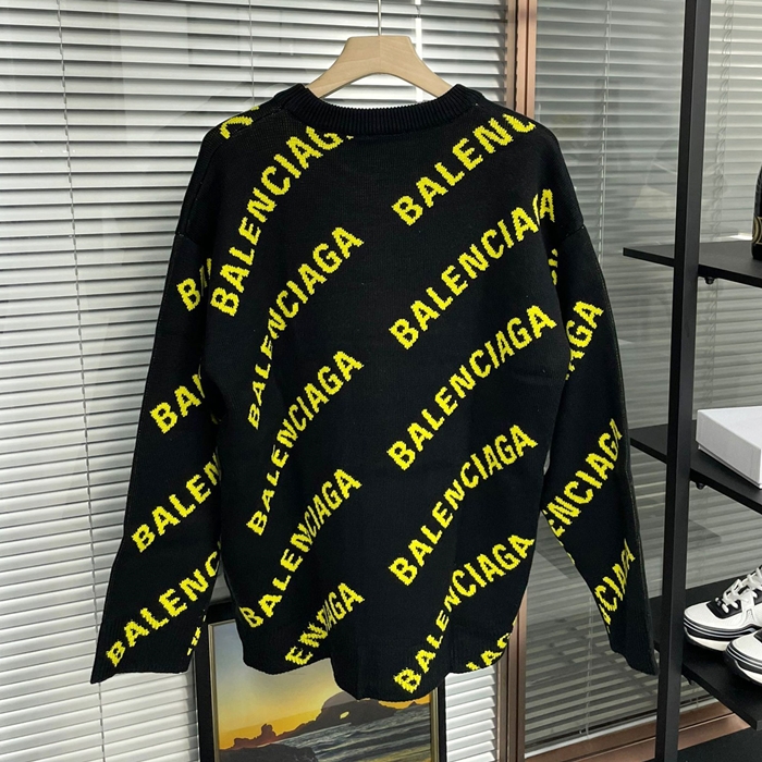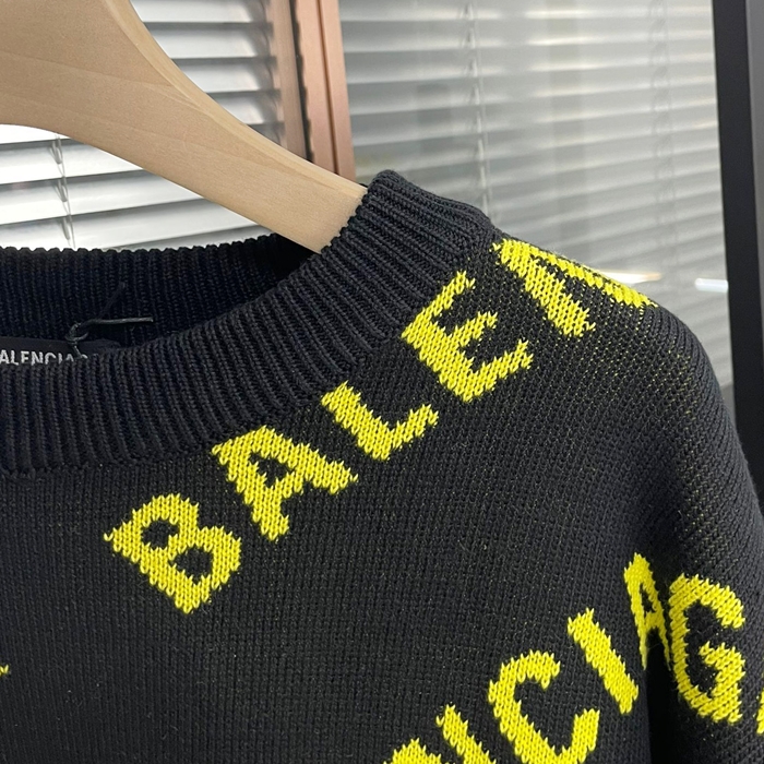 ] - バレンシアガメンズ LOGO クルーネック セーター Bal0884x.Size(xs - l).ブラック