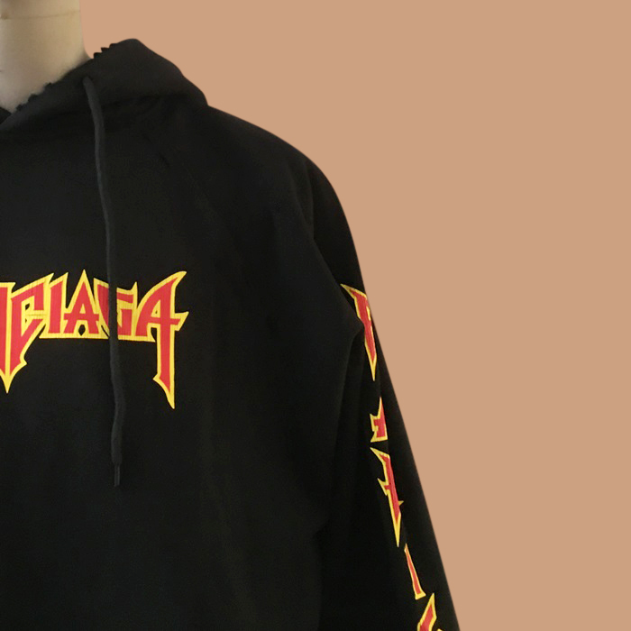 バレンシアガ ユニセックス ブラック ジップアップ フーディーTシャツ -