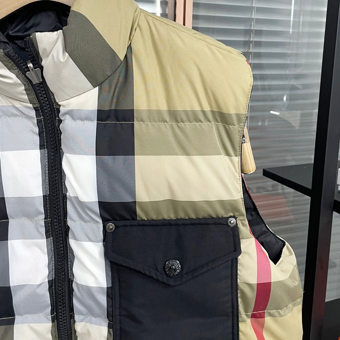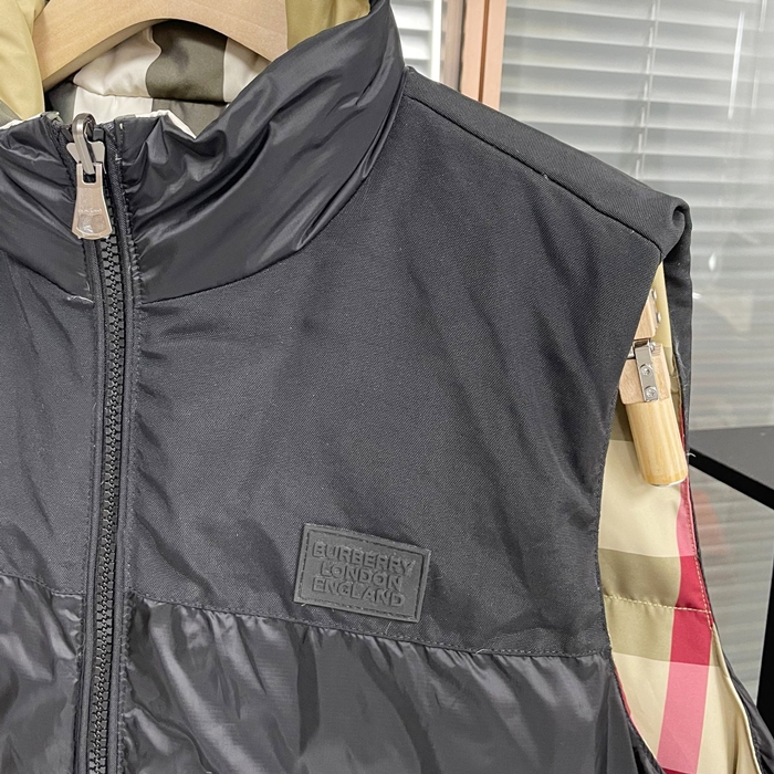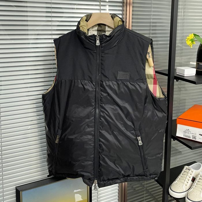 バーバリー メンズ ブラック パディング リバーシブルベスト - Down bu294x