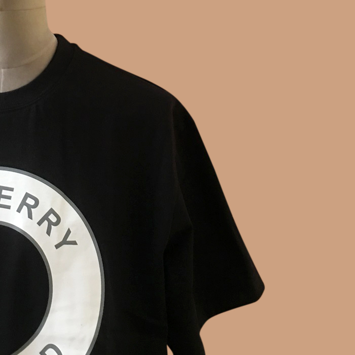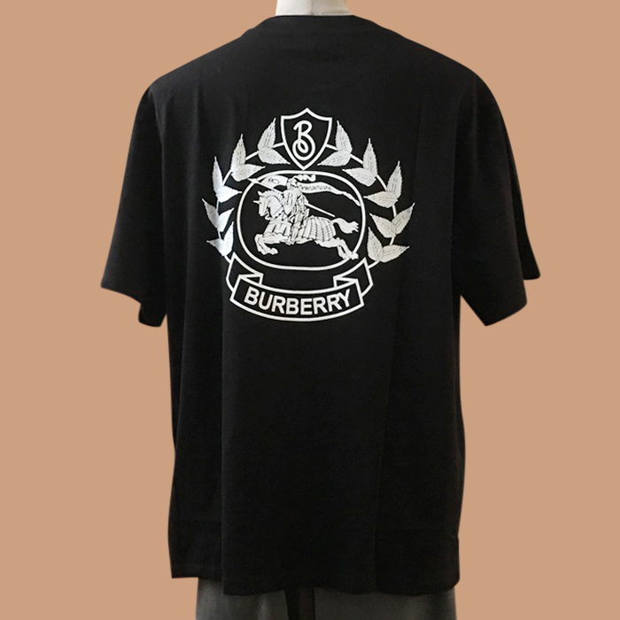 バーバリー メンズ ブラック クルーネック 半袖Tシャツ - Short Sleeved
