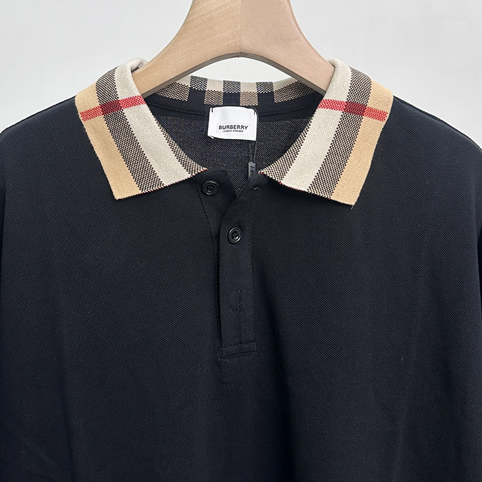 バーバリー メンズ ブラック クルーネック 半袖Tシャツ - Short bu220x