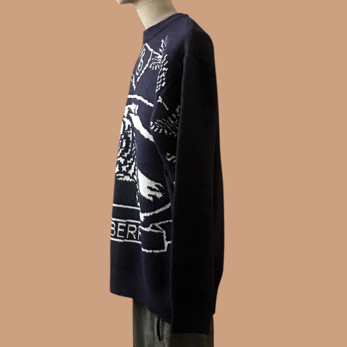 バーバリー メンズ クルーネック ネイビー ニット - Knits - bu05x