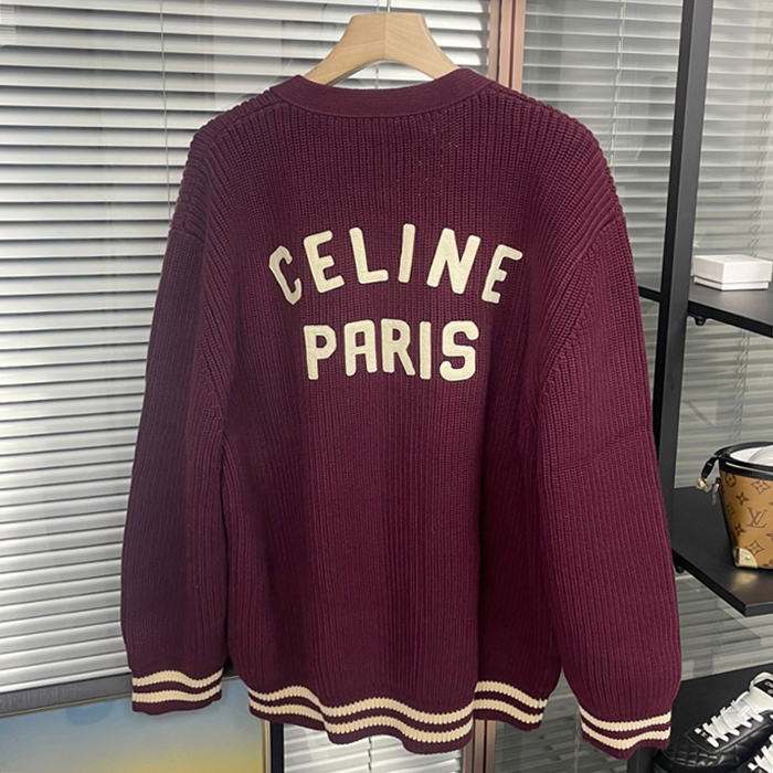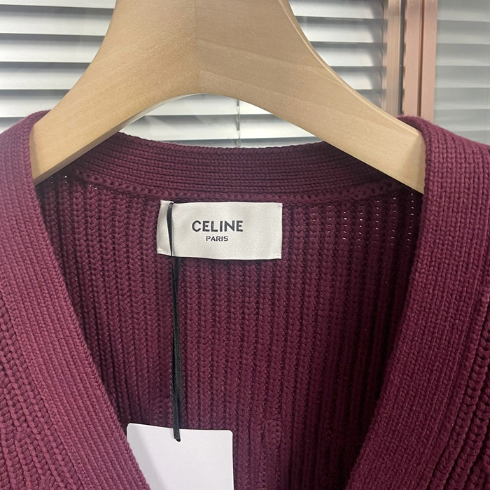 セリーヌ ユニセックス バーガンディ Vネック カーディガン - CelineBurgundy  - cec174x