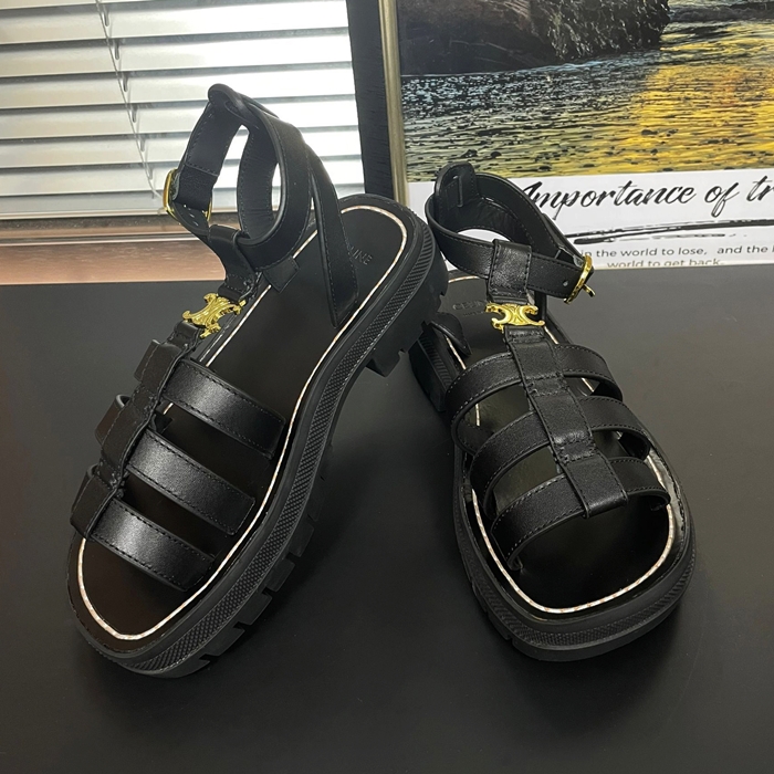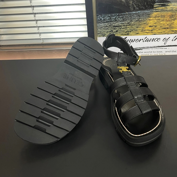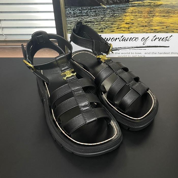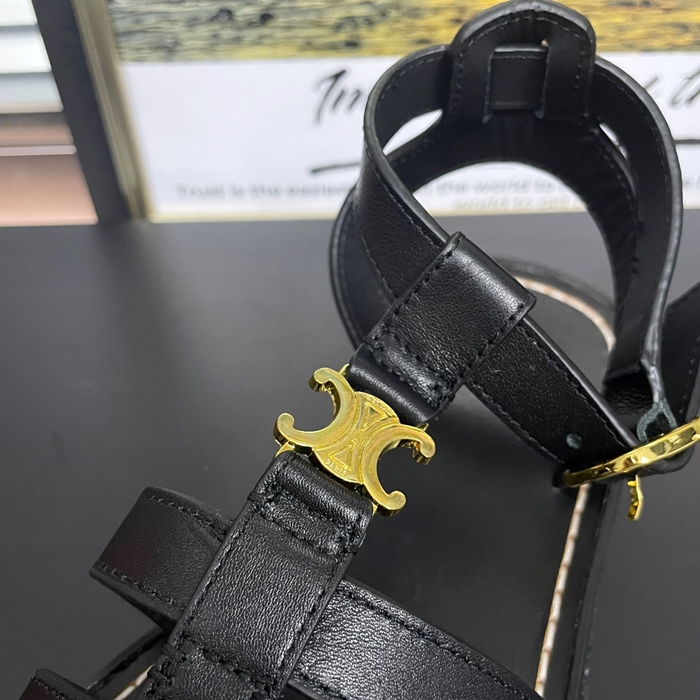 Slipper,CELS0020 - セリーヌ レディースレザーサンダルブラック