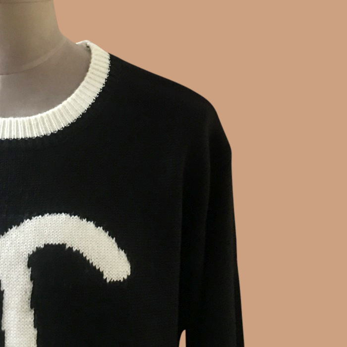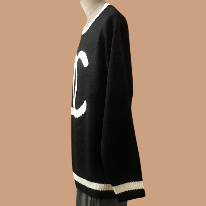 シャネルユニセックス ブラック クルーネック ニット - ChanelKnits - ch007x