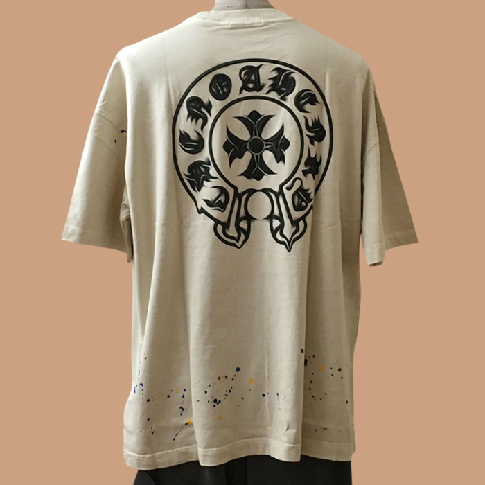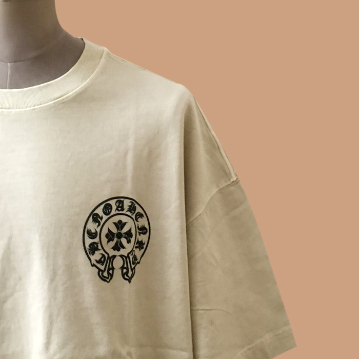 クロムハーツ メンズ ベージュ クルーネック 半袖Tシャツ - Short sleeved