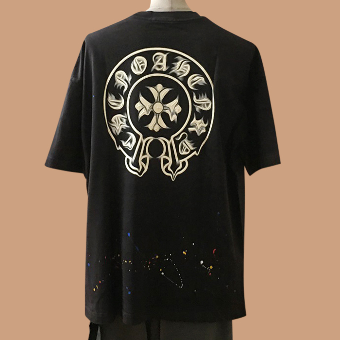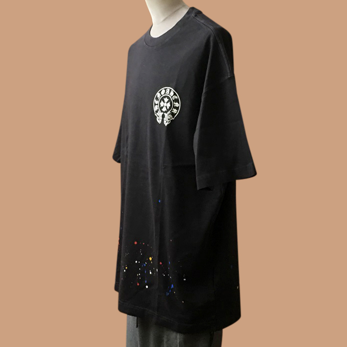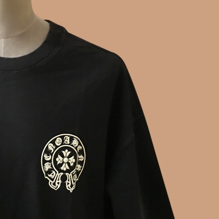 クロムハーツ メンズ ブラック クルーネック 半袖Tシャツ - Short sleeved