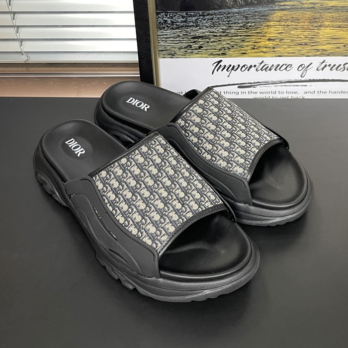 DIOR H-TOWN メンズ オブリーク ジャカード ブラック スライド  -   - di668x