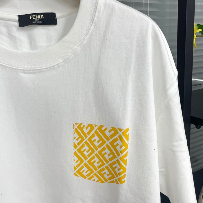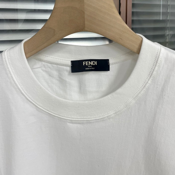 フェンディ メンズ ホワイト クルーネック 半袖Tシャツ - White Short sleeved - fe160x