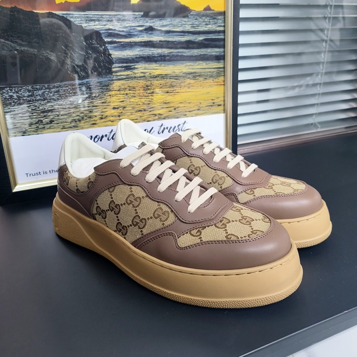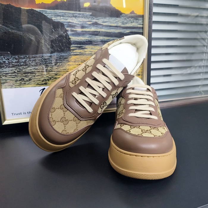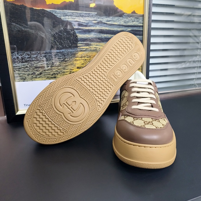 グッチ ユニセックス GG シュプリーム キャンバスレザースニーカー -Camel - gu957x