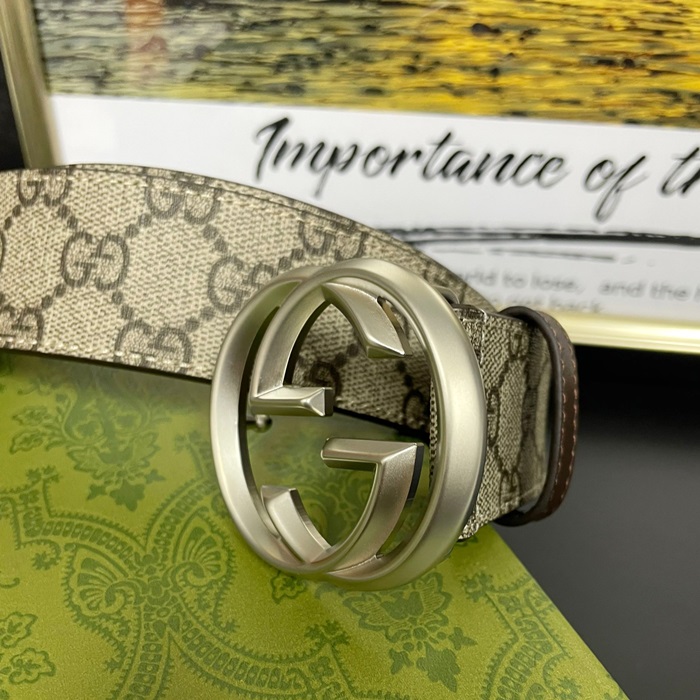 2019  GG  -グッチ リバーシブル メンズ  GGレザーベルト Guc0583x.ブラウンシルバー