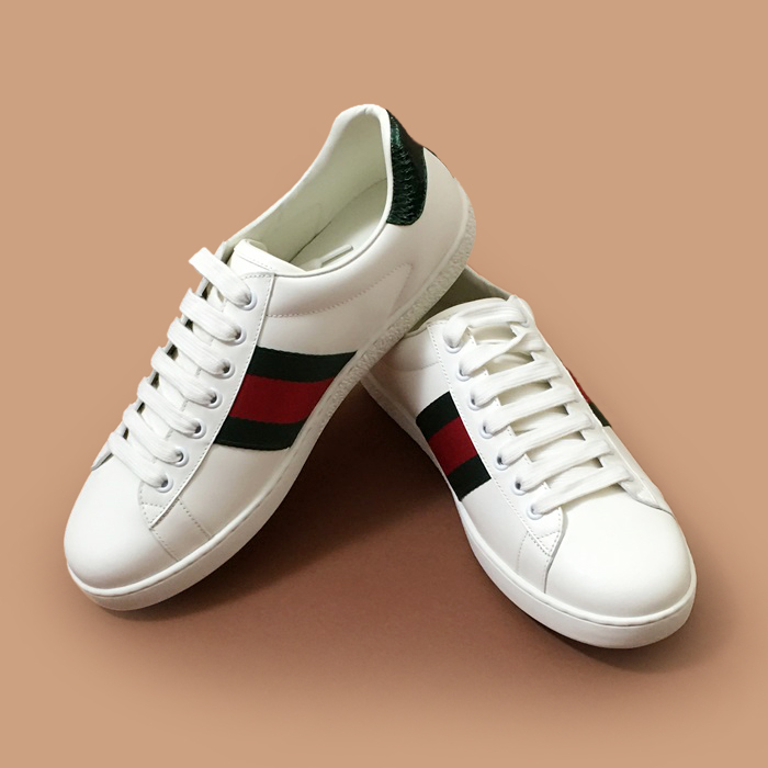 - グッチメンズレザースニーカーホワイト