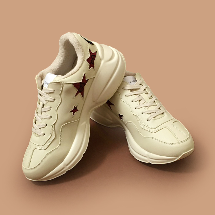 - グッチユニセックスレザースニーカーホワイト