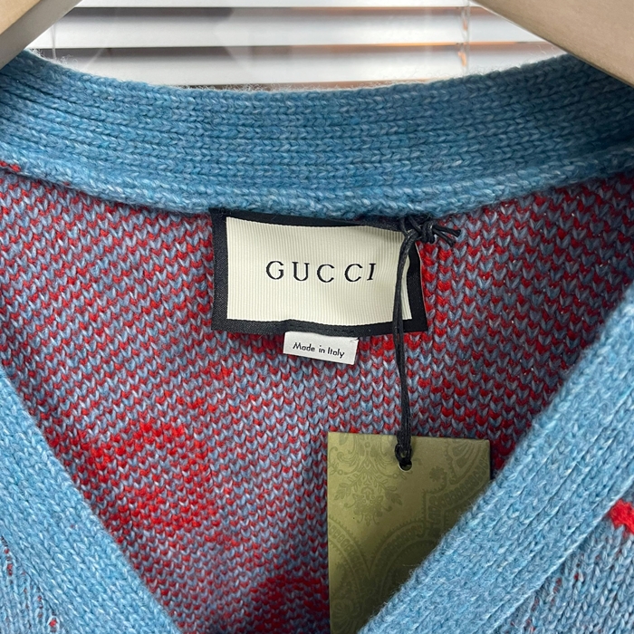 グッチメンズ トレンディ Vネック カーディガン Guc03085x.ブルー