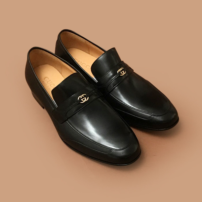 グッチ メンズ イニシャル ブラックローファー -Loafer