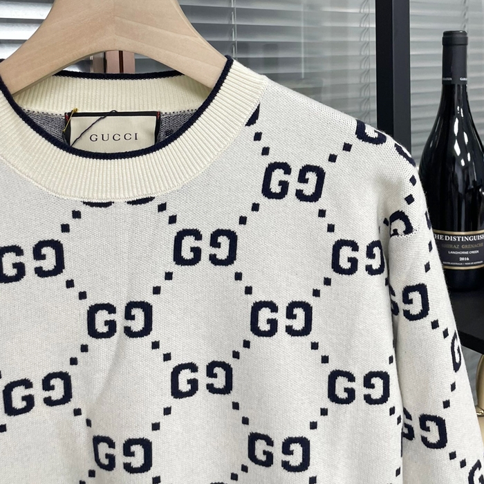 グッチ メンズ ホワイト クルーネック セーター -White - gu1026x