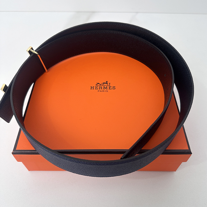 - エルメスメンズ リバーシブルレザーベルト HERBT0077,ネイビー